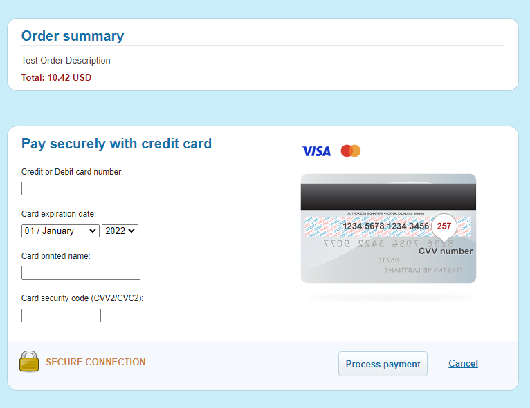 Payers fill out a payment form provided by Connection Party or Payment Gateway side and sends data.