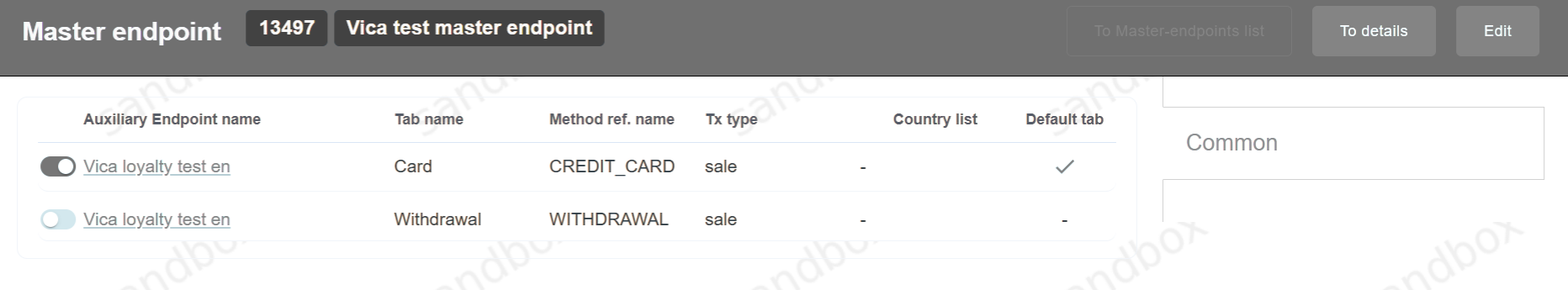 Payment Cashier integration requires a configured Master Endpoint to display Cashier Form (also called Parallel Form) and configured Auxiliary Endpoints for each payment method to be displayed on the Parallel Form. The Manager can configure on Master Endpoint which transaction type (sale, preauth) will be initiated for each payment method and for which list of countries this payment method will be displayed. There can be several payment methods, such as Credit Card, Bank Transfer, etc. on the same Parallel Form available for the Payer to choose from.