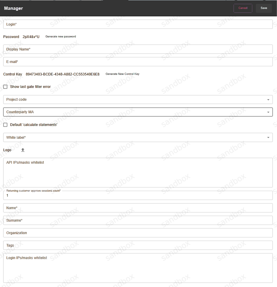 SecurePay platform contains integrated calculation system to reflect the tariffication between business process partners. Calculation happens on each level, from dealer to merchant. Bank fees are calculated for tariffication and settlement, but statements for settlement with the bank are not provided by the system. Instead, the system calculates statements per Merchant and indicates which exact amount should be received from the bank. Statement is individually generated for each manager or each merchant of this manager. Statement date is called business day. Statement for business day contains all projects for chosen manager. Statements will be calculated for manager if such option is enabled. If statement should be calculated, enable the Default calculate statements flag in manager account details. If this option is not enabled, statements setting in projects of exact manager will be unavailable and statements are not calculated.