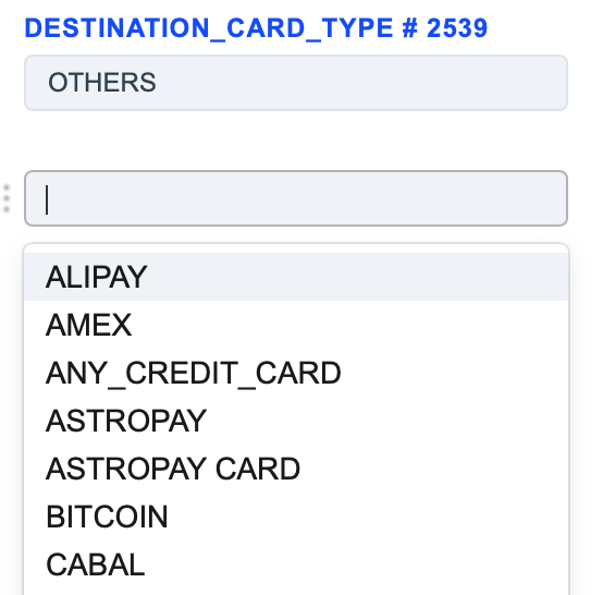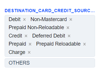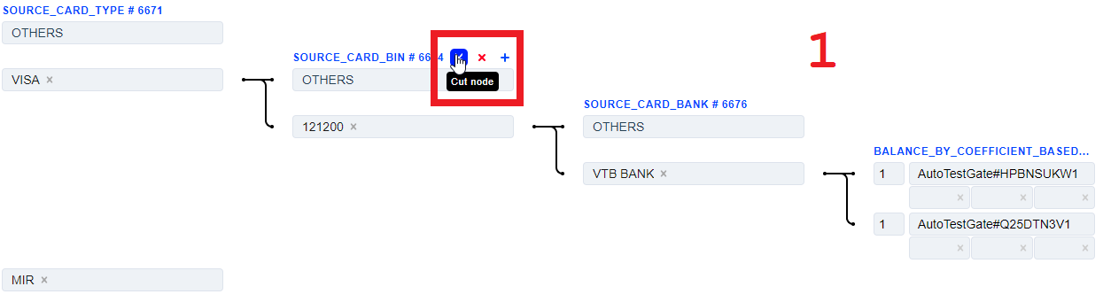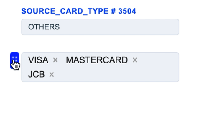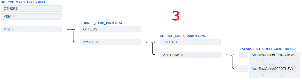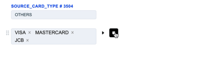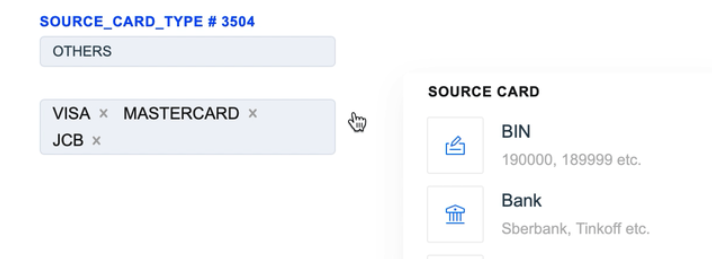 The Source Card Credit Source routing type allows to sort transactions by the sender’s card type. Select the needed card types of the sender and build a further route based on them.