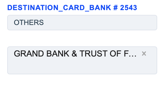3) The Destination Card Bank routing type allows to sort transactions by the receiver’s Issuer Bank name. Select the needed Issuer Bank names of the receiver and build a further route based on them. There is an option to search Banks by their names. System can search for up to 500 entered Bank names listed one after another and separated by commas. They can be chosen by pressing the “By name -” button.