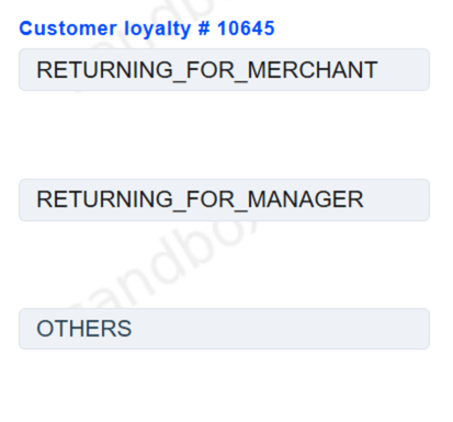 Customer Loyalty routing type is divided into endpoint, project, merchant, manager. Each of these levels has a Returning customer approve sessions count field that can be set for Managers by users with Superior role, while for Projects, Endpoints and Merchants - by users with Manager role. This value sets the number of transactions after which the customer will be considered “RETURNING”.