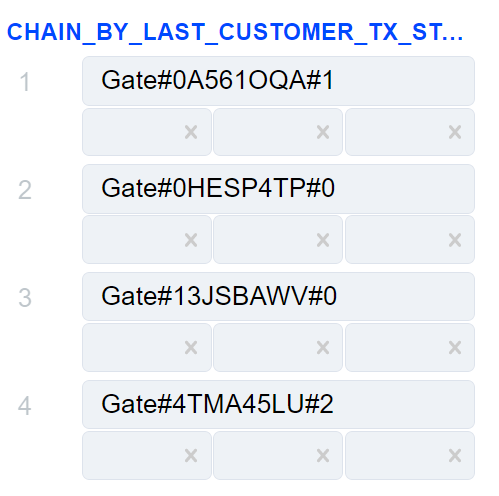 First in Sequence by Last Customer Tx Status on Gate allows to sort transactions by resulting transaction status.