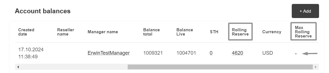 Max Rolling Reserve can be changed in the Change Max Rolling Reserve window that appears. To set or edit the Max Rolling Reserve, click on the value -.