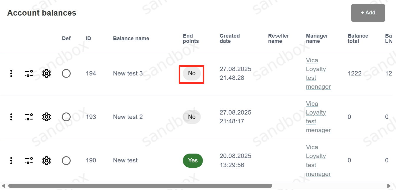 In this case, only one of the balances can be without the specified Endpoints. When creating all subsequent balances, it is mandatory to specify the Endpoint. The calculation is made for each balance separately: the balance without the specified Endpoints is counted only for those Endpoints for which a separate balance has not been created.