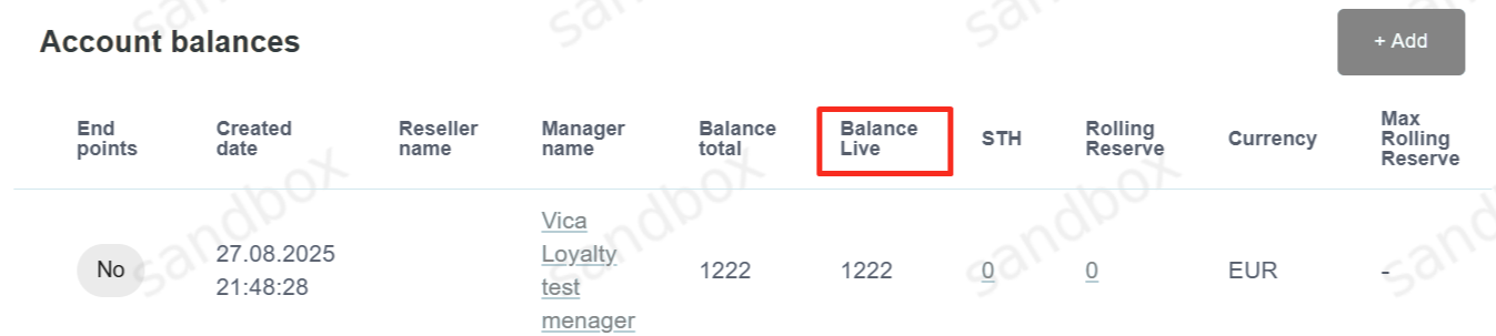 Example: For balance 191 Sale and Payout operations are overrode, that means for this balance main configuration doesn’t affect.