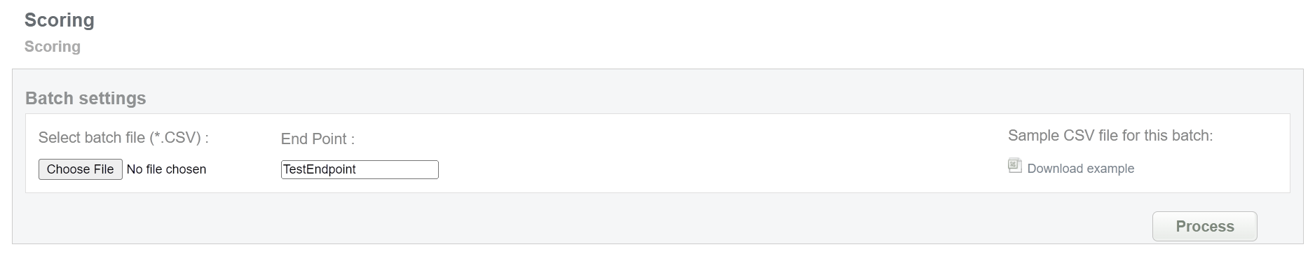 This batch allows to get information about card scoring. Collect order IDs and needed card data, assigned by SecurePay system and enter all information to the CSV file and upload it to receive card scoring information. An example of CSV file for upload is available on the same screen.