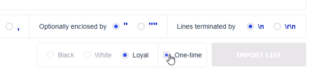 Select Merchant or Manager to switch between adding BWL list to Merchant or Manager.